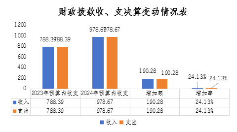 2024年度財(cái)政撥款收、支總計(jì)均為978.67萬元。與2023年度相比,2024年度預(yù)算收入978.67萬元,比上年預(yù)算收入788.39萬元增加190.28萬元,增加24.13%,收入、支出增加的主要原因是:財(cái)政追加“巴適購”電商平臺(tái)建設(shè)補(bǔ)助、革命老區(qū)重點(diǎn)城市對(duì)口合作(金華-巴中)等企業(yè)發(fā)展資金項(xiàng)目;增人增資及社會(huì)保障繳費(fèi)預(yù)算收入總數(shù)增加,年末沒有資金結(jié)轉(zhuǎn)到下年等原因。