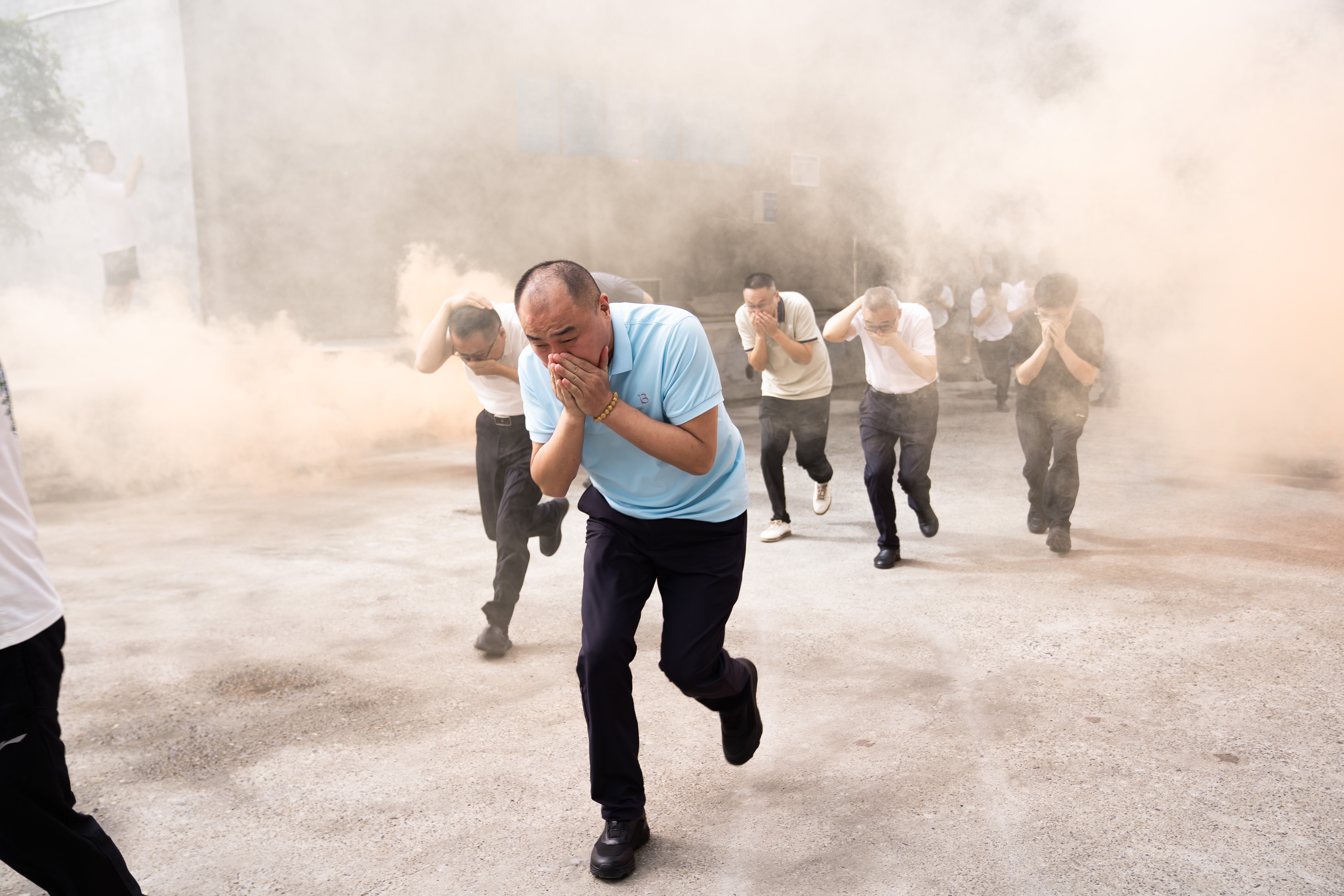 隨后,緊張有序的實操演練拉開帷幕。模擬倉庫真實火險場景展開消防演練,重點檢驗倉庫易燃物起火、突發(fā)火情、電氣短路火災應對措施及技巧。消防員指導參訓人員現(xiàn)場演練了火警速報、初期撲救,滅火器、消火栓使用,人員應急疏散,傷員搜救、現(xiàn)場急救及多部門應急聯(lián)動響應等相關場景。演練結束后,組織方立即進行了全面評估與總結優(yōu)化。整場演練高度貼近實戰(zhàn),參訓人員反應敏捷、操作精準,不僅驗證了應急預案的可行性,更顯著提升了隊伍的實戰(zhàn)應急處置水平。